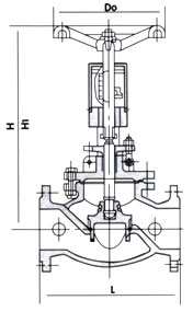 四、KPF一16型平衡閥主要外型尺寸(法蘭連接PNl.6MPA按JB/T79—94標準):