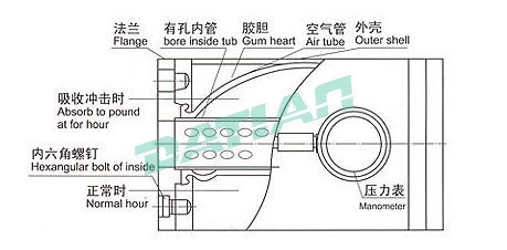 Y900P水錘消除器采用活塞氣囊式內部為密封的容氣腔。下端為活塞,當沖擊波傳入水錘消除器時,水擊波作用于活塞上,活塞將被推往容氣腔的方向運動,活塞在一定壓力的氣體和不規則水擊波雙重作用下做上下運動,形成一個動態的平衡,這樣就消除了不規則的水擊波震蕩。